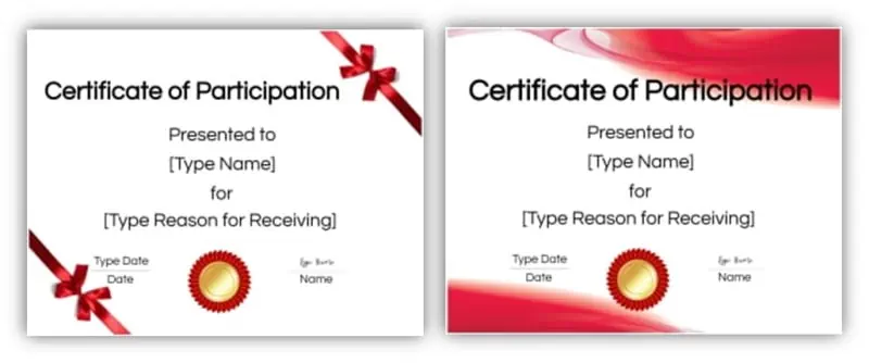 You can edit any certificate of participation template free of charge. Select any border or ribbon and edit the text.